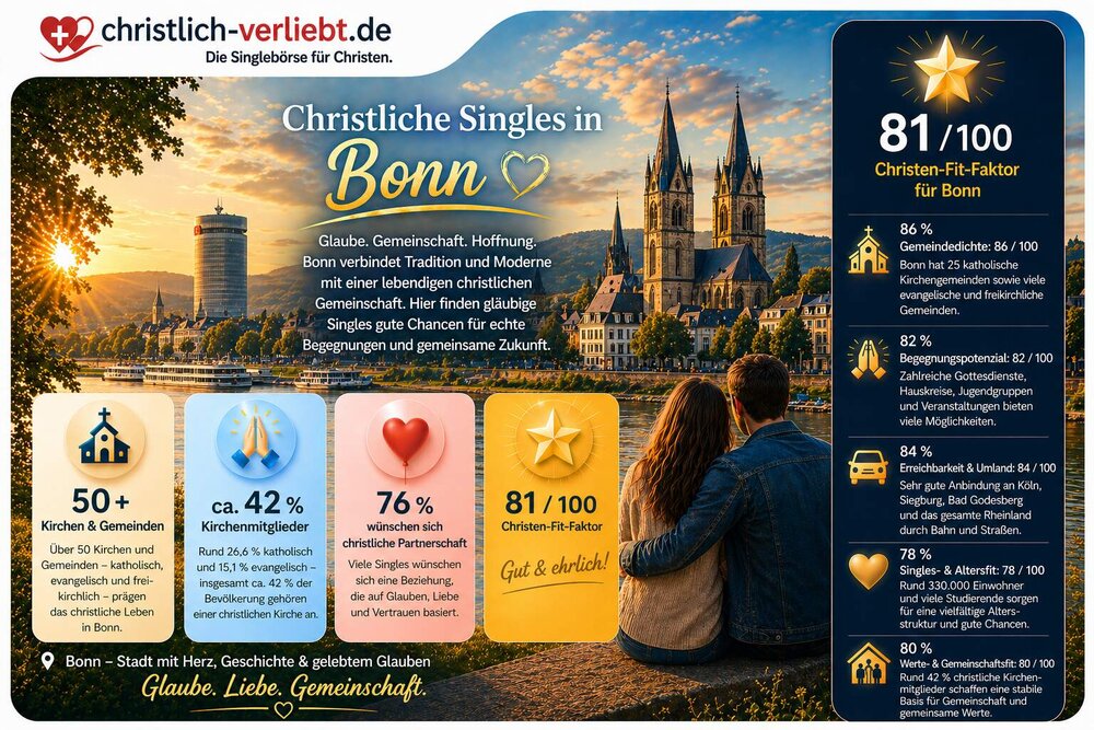 Bonn gehört damit zu den besonders geeigneten Städten für christliche Partnersuche und lebendige Gemeinschaft.